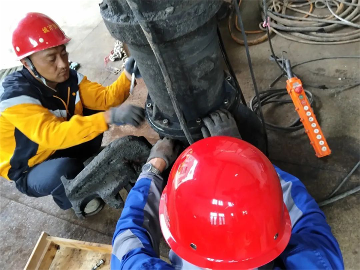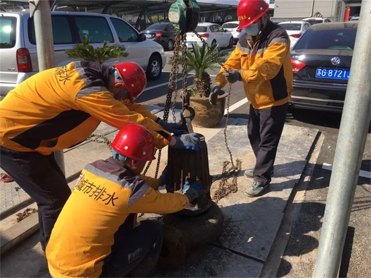 夏正亮赶到盐河南路泵站时裤腿鞋子已经被浸湿,他顾不得这些,抹一抹脸上的污水冲到泵站设备前,还好是个小故障。